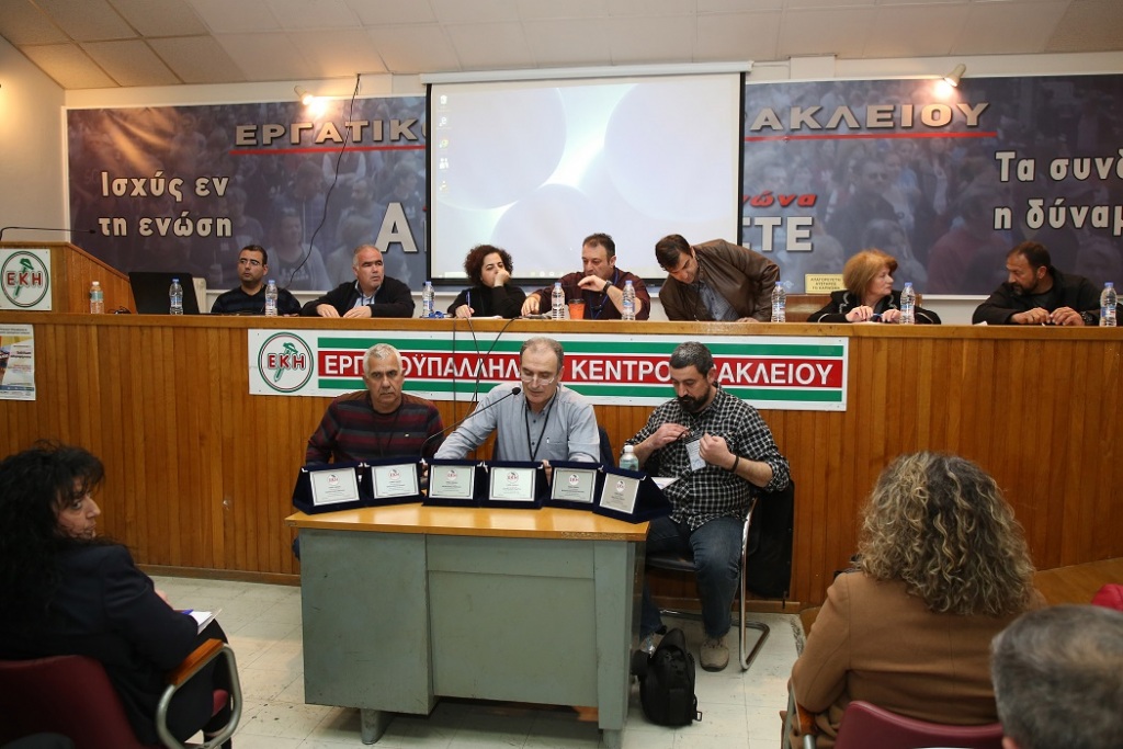 Στην κατάμεστη αίθουσα Γενικών Συνελεύσεων του Εργατικού Κέντρου Ηρακλείου, με την παρουσία των εκατοντάδων συνέδρων των Σωματείων της Δύναμης του, πραγματοποιήθηκε το απολογιστικό ετήσιο Συνέδριο του ΕΚΗ.