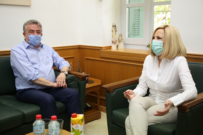 Η πρόεδρος του Κινήματος Αλλαγής Φώφη Γεννηματά κατά τη δεύτερη ημέρα της περιοδείας της στην Κρήτη πραγματοποίησε συνάντηση με τον Περιφερειάρχη Κρήτης Σταύρο Αρναουτάκη, ενώ αυτή την ώρα μετέχει σε σύσκεψη με φορείς της Περιφέρειας Κρήτης.