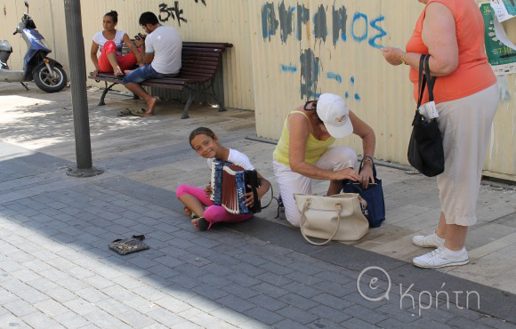 Είναι κάθε πρωί εκεί. Στην Λεωφόρο της Πλάνης του Ηρακλείου. Ακριβώς για να την αποσυνθέτει με τον δικό της τρόπο: τραγουδώντας και παίζοντας ακορντεόν. Η 10χρονη Κατερίνα δεν οραματίζεται ... Αυγουστιάτικες διακοπές. Αλλά δεν παραπονιέται κιόλας. Χαμογελάει πλατιά σε κάθε κέρμα περαστικού που προσγειώνεται μπροστά της κι ευχαριστεί σε τόσες γλώσσες που ξαφνιάζεσαι ακούγοντας την. Μία νότα χαρμολύπης για όσους φευγαλέα κοντοστέκονται.