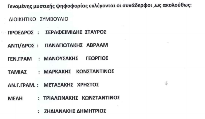 Αναλυτικά το νέο Διοικητικό Συμβούλιο έχει ως εξής: