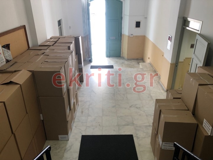 Με την παραλαβή εκλογικού υλικού και συγκεκριμένα, φακέλλων, η Περιφέρεια Κρήτης, όπως βλέπετε στις φωτογραφίες, μπαίνει και επίσημα σε προεκλογικό κλίμα, 32 ημέρες πριν την εκλογική αναμέτρηση της 26ης Μαίου, αυτοδιοικητικών εκλογών και ευρωεκλογών.