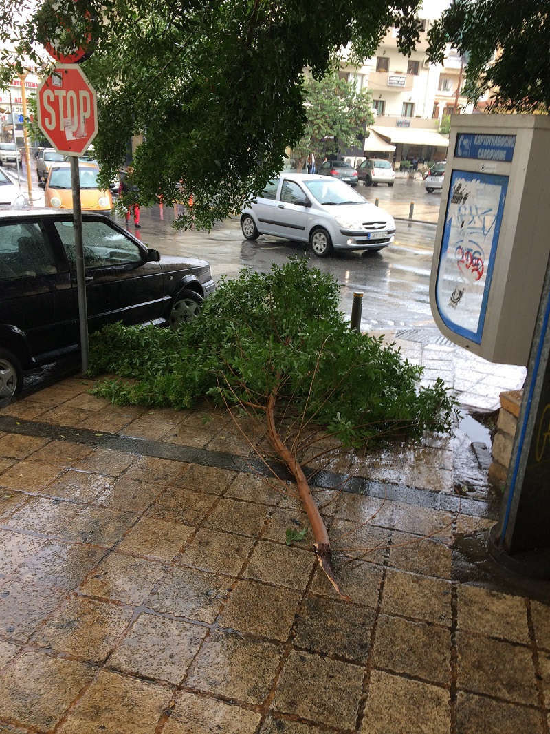Όπως βλέπετε στις φωτογραφίες που έστειλε αναγνώστης του ekriti, το κλαδί έπεσε στο πεζοδρόμιο, λόγω της δυνατής βροχής, και από θαύμα γλίτωσε κάποιος πεζός, αλλά και τη ζημιά, το αυτοκίνητο που είναι παρκαρισμένο εκεί.