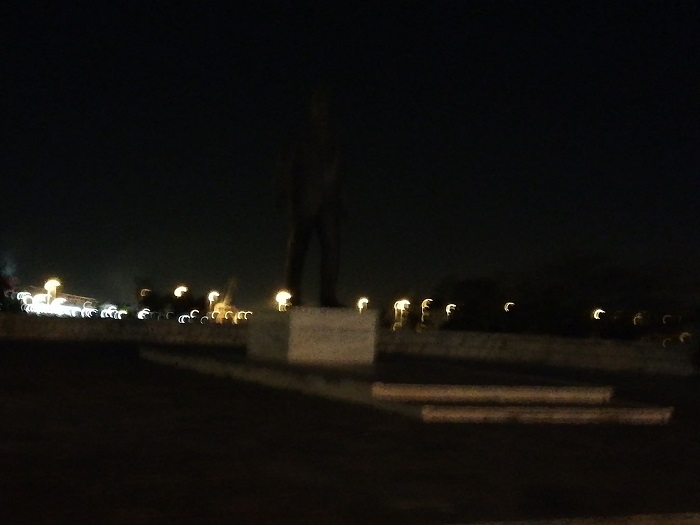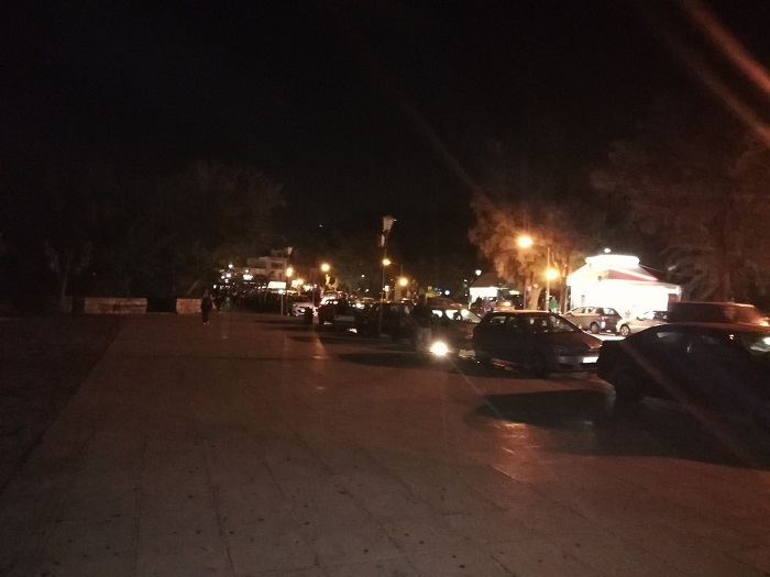 Μαύρα σκοτάδια μπροστά από το άγαλμα του Ελευθερίου Βενιζέλου στο κέντρο του Ηρακλείου. Τα φωτιστικά έχουν καθαρά διακοσμητικό ρόλο, και αν δεν ήταν τα φώτα των αυτοκινήτων, όλη η περιοχή θα ήταν βυθισμένη στο σκοτάδι.