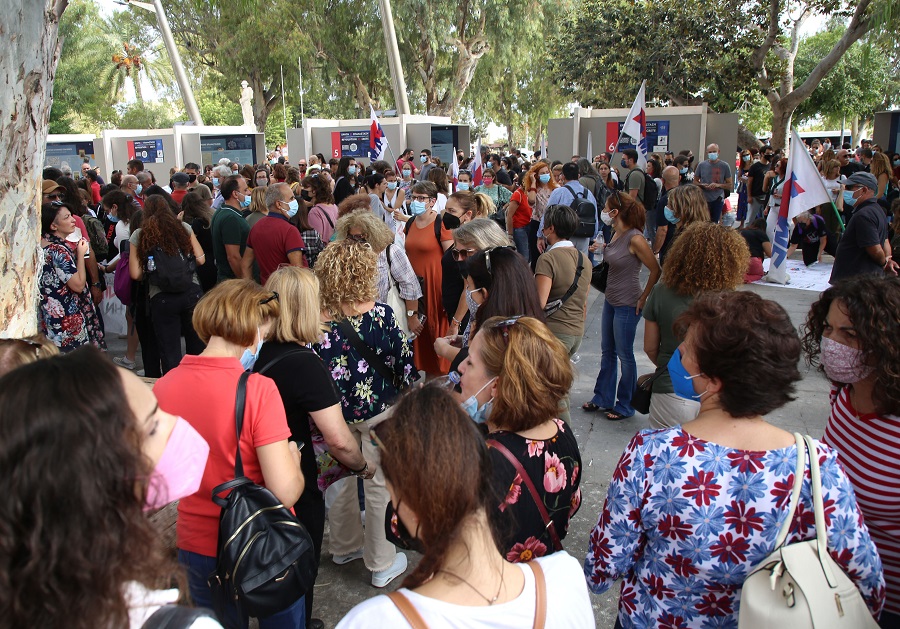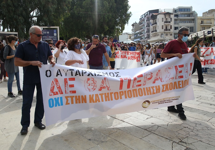 Δάσκαλοι όλων των ενώσεων και καθηγητές της Δευτεροβάθμιας Εκπαίδευσης ξεχύθηκαν στους δρόμους στο κέντρο του Ηρακλείου.