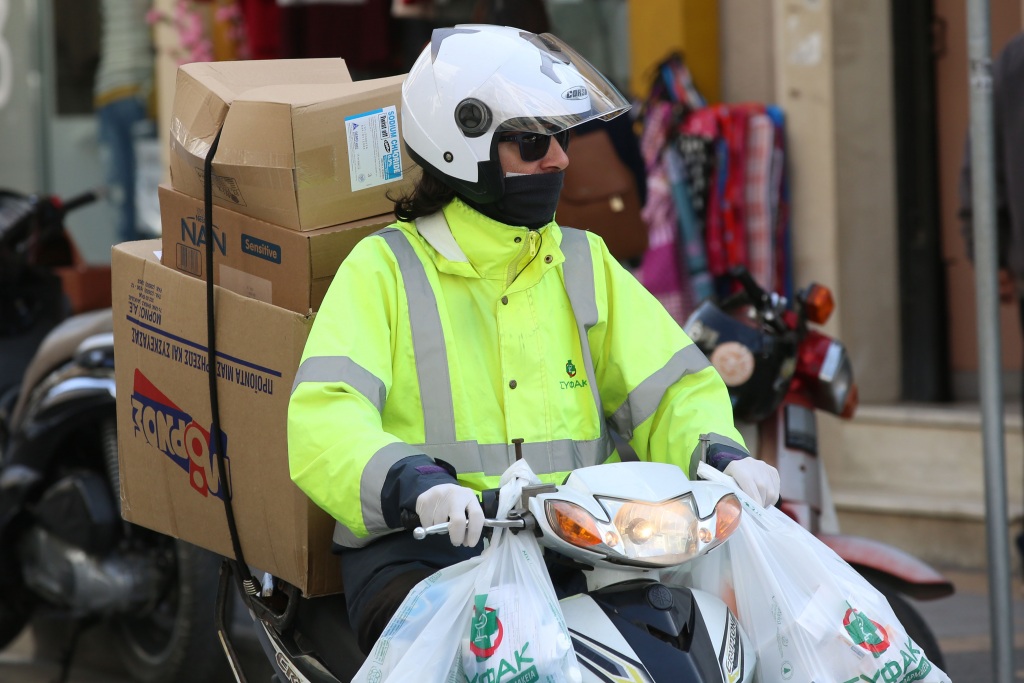 Τα ψώνια ή την βόλτα τους φορώντας μάσκες κάνουν πολλοί Ηρακλειώτες, φοβούμενοι τον κορωνοϊό.