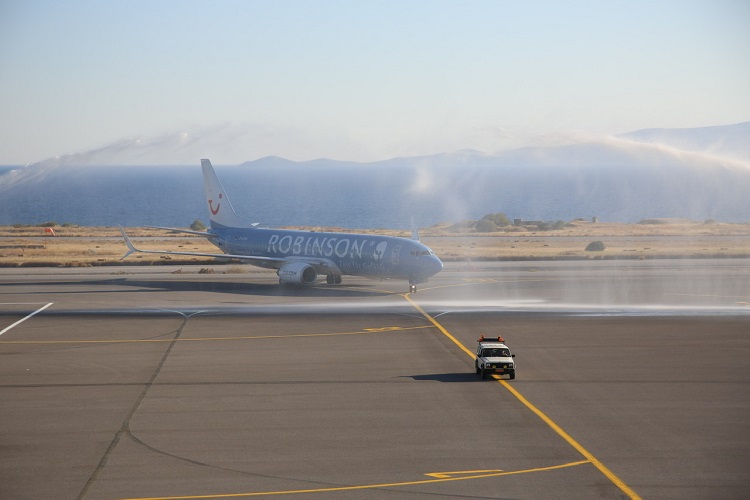 Στο περιθώριο της τελετής υποδοχής των πρώτων τουριστών υπήρξε ισχυρή αστυνομική δύναμη πέριξ του αεροδρομίου λόγω κινητοποίησης των οδηγών τουριστικών λεωφορείων, οι οποίοι αντιδρούν στη μη υπογραφή -έως σήμερα- της συλλογικής σύμβασης εργασίας με τους ιδιοκτήτες.