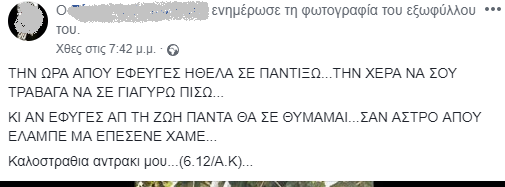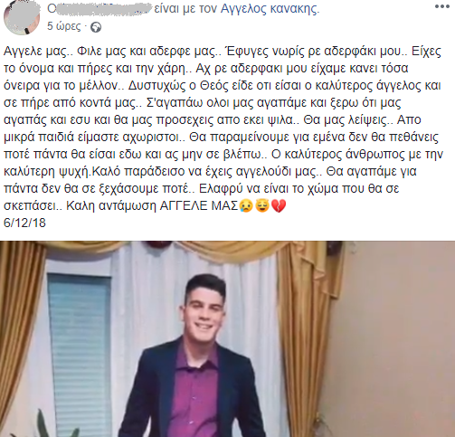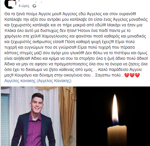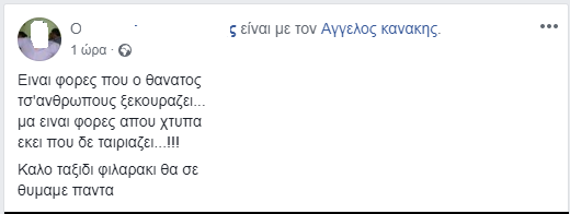 Τα μηνύματα που αφήνουν φίλοι και συγγενείς στη σελίδα του είναι σπαρακτικά. Οι περισσότεροι τον αποχαιρετούν με μαντινάδες, κάτι που ο Άγγελος αγαπούσε πολύ.
