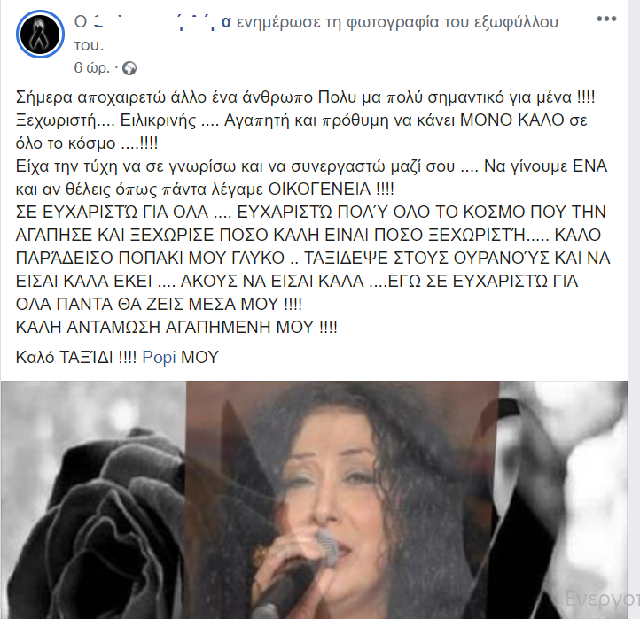 Η Πόπη, δεν τα κατάφερε και άφησε την τελευταία της πνοή ύστερα από πολύχρονη μάχη που έδινε με ένα σοβαρό πρόβλημα υγείας.