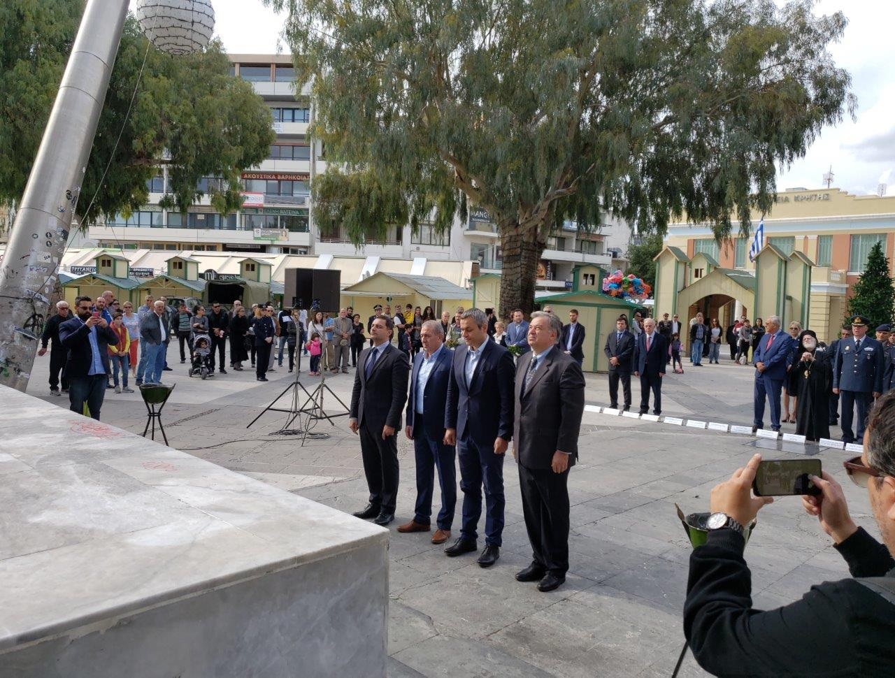 Την επιμνημόσυνη δέηση τέλεσε ο Αρχιεπίσκοπος Κρήτης κ.κ. Ειρηναίος, ενώ στεφάνια κατέθεσαν στο άγαλμα του Άγνωστου Στρατιώτη: ο εκπρόσωπος της Κυβέρνησης, Γενικός Γραμματέας Εσωτερικών και Οργάνωσης Μιχάλης Σταυριανουδάκης, οι βουλευτές Ηρακλείου Μάξιμος Σενετάκης, Σωκράτης Βαρδάκης, Χάρις Μαμουλάκης, Γιώργος Λογιάδης, ο Αντιπεριφερειάρχης Ηρακλείου Νίκος Συριγωνάκης, ο Δήμαρχος Ηρακλείου Βασίλης Λαμπρινός, οι εκπρόσωποι στρατιωτικών αρχών, κομμάτων, οργανώσεων αποστράτων και αντιστασιακών οργανώσεων.