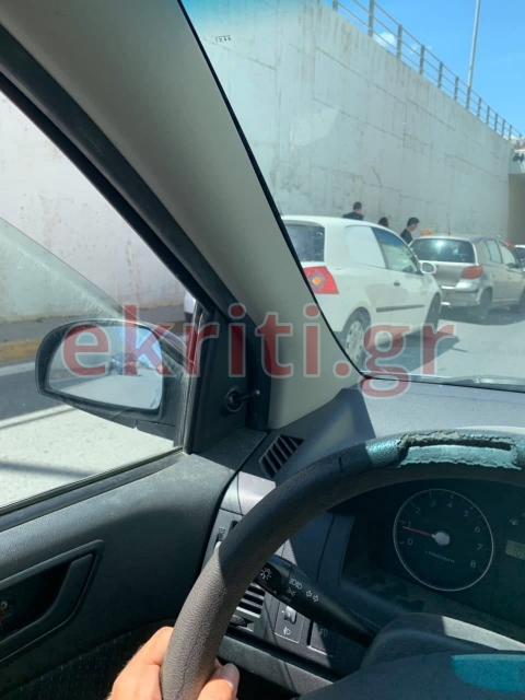 Τροχαίο ατύχημα, σημειώθηκε πριν από λίγο, στη ράμπα καθόδου της εθνικής προς Κνωσού. Όπως βλέπετε στις φωτογραφίες αναγνώστη του ekriti, ένα ΙΧ έπεσε πάνω σε προπερευόμενο αυτοκίνητο.