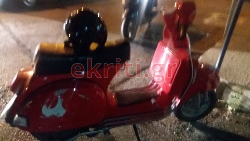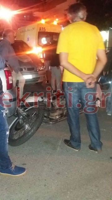 Από την σύγκρουση τραυματίστηκαν οι δύο επιβαίνοντες σε μία κόκκινη βέσπα και οι οποίοι μεταφέρθηκαν με το ΕΚΑΒ στο Βενιζέλειο Νοσοκομείο του Ηρακλείου.