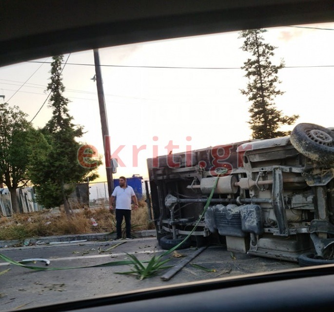 Αυτοκίνητο τύπου κλούβας, κάτω από άγνωστες για την ώρα συνθήκες, εξετράπη της πορείας του και στη συνέχεια γύρισε στο πλάι.