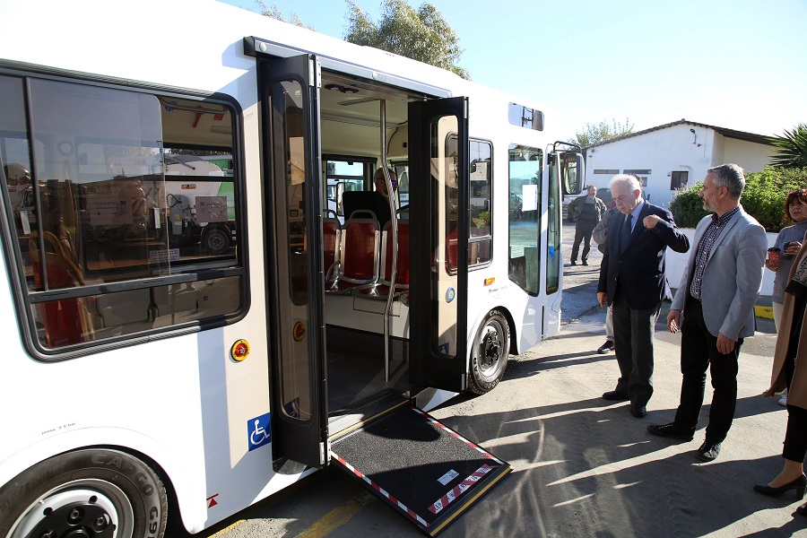 Το πρώτο από τα δύο ηλεκτροκίνητα λεωφορεία που απέκτησε πρόσφατα ο Δήμος Ηρακλείου βρίσκεται ήδη στο αμαξοστάσιο. Ο Δήμαρχος Ηρακλείου Βασίλης Λαμπρινός, συνοδευόμενος από τους Αντιδημάρχους Γιάννη Αναστασάκη, Κώστα Βαρδαβά και Γιώργο Σισαμάκη, είχε την ευκαιρία να το δει από κοντά και να ενημερωθεί για τις δυνατότητές του.