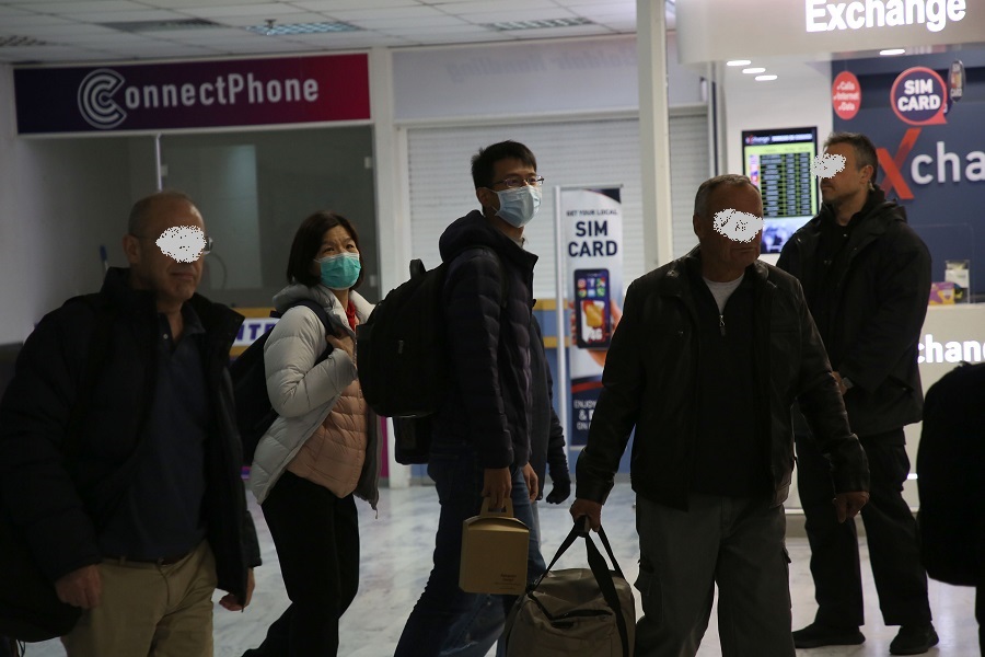 Κινέζοι φορώντας μάσκες έφτασαν το πρωί στο αεροδρόμιο Ηρακλείου "Νίκος Καζαντζάκης".