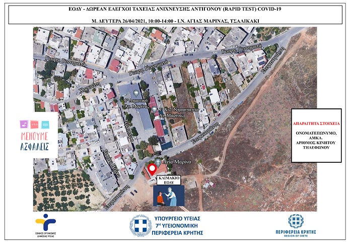 Μ.Δευτέρα 26/04/2021 από κλιμάκια του ΕΟΔΥ στο Τσαλικάκι Γαζίου στο Ηρακλειο.