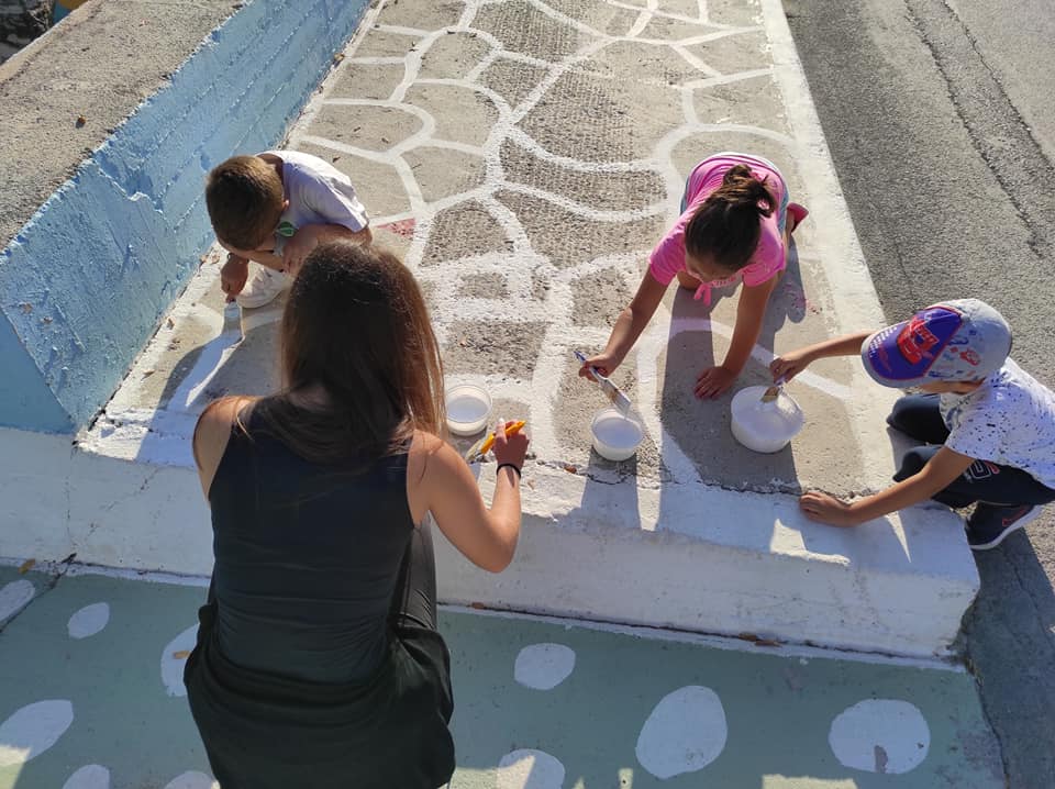 Με τα πινέλα στα χέρια, μικροί και μεγάλοι έδωσαν χρώμα στα πεζοδρόμια και τους δρόμους του χωριού και το αποτέλεσμα είναι κάτι παραπάνω από όμορφο.