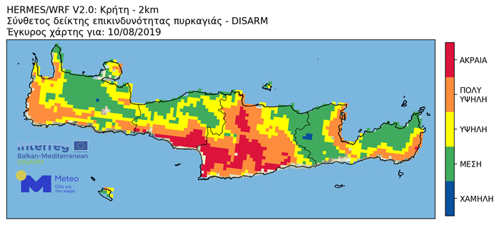 Η άνοδος της θερμοκρασίας και η ενίσχυση των ανέμων που αναμένουμε το Σάββατο 10 Αυγούστου 2019 θα οδηγήσει τοπικά σε περιοχές της Νότιας Κρήτης σε πολύ υψηλό κίνδυνο εκδήλωσης και εξάπλωσης πυρκαγιών.