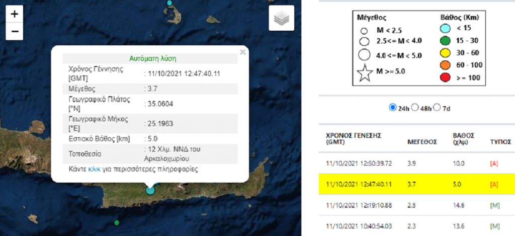 Έντονη σεισμική δόνηση ταρακούνησε το Ηράκλειο στις 15:47:40.