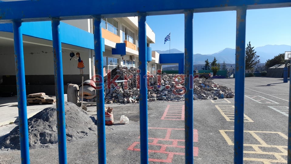 Λίγα μέτρα παρακάτω, στο 2ο Δημοτικό Σχολείο, οι εργασίες κατεδάφισης και επισκευής συνεχίζονται προκειμένου οι μαθητές να επιστρέψουν όσο το δυνατόν γρηγορότερα πίσω στις αίθουσες τους και να φύγουν από τις λυόμενες.