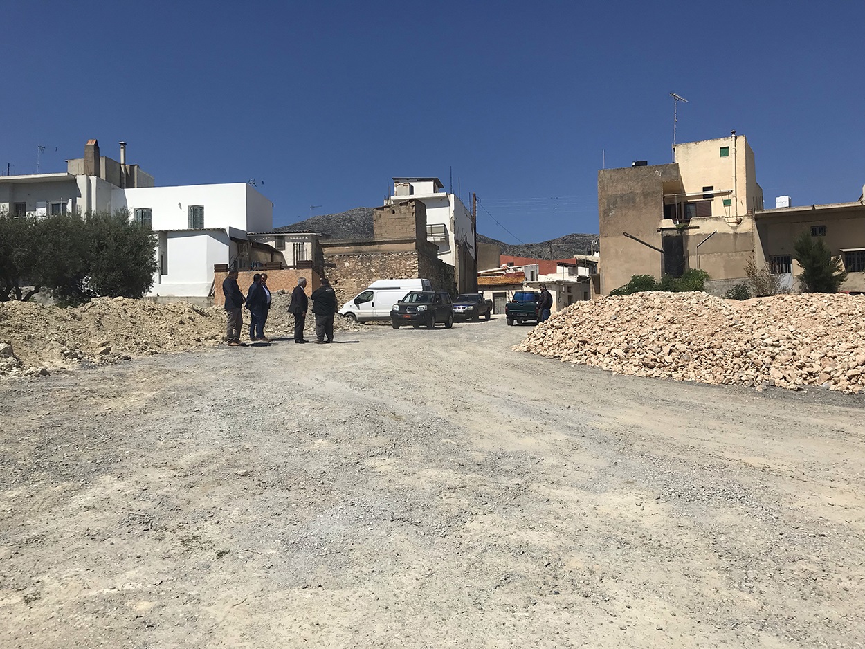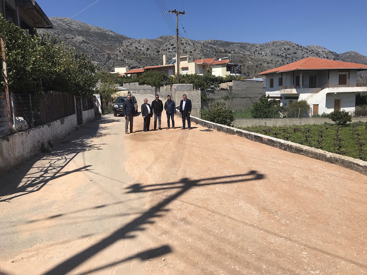 Ο Κ. Μαμουλάκης είδε την τελευταία διάνοιξη δρόμου που ολοκληρώθηκε μετά από παραχώρηση του ιδιοκτήτη της παρακείμενης έκτασης Μανώλη Κουβίδη μέσα στον οικισμό και η οποία συμπεριλάμβανε ταυτόχρονη μετατόπιση δικτύων, την κατασκευή τοιχίου αντιστήριξης και τη δημιουργία νέων δικτύων ομβρίων, καθώς και εργασίες ασφαλτόστρωσης που θα πραγματοποιηθούν τις επόμενες ημέρες.