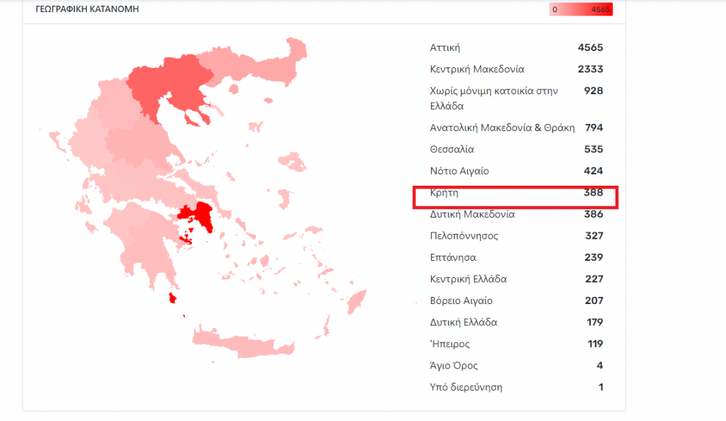 Συνολικά σύμφωνα με τον χάρτη του ΕΟΔΥ στην Κρήτη αναφέρονται 388 κρούσματα: