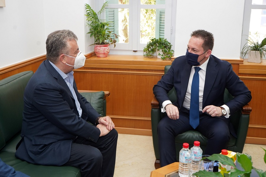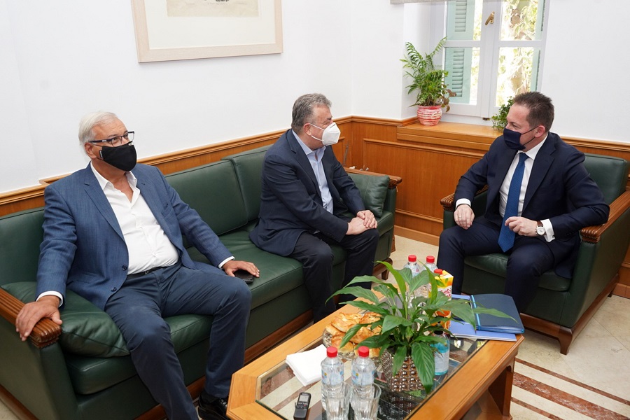 Ο υπουργός επισκέφθηκε τα γραφεία της Περιφέρειας Κρήτης στο Ηράκλειο και είχε συνάντηση με τον Περιφερειάρχη Σταύρο Αρναουτάκη.