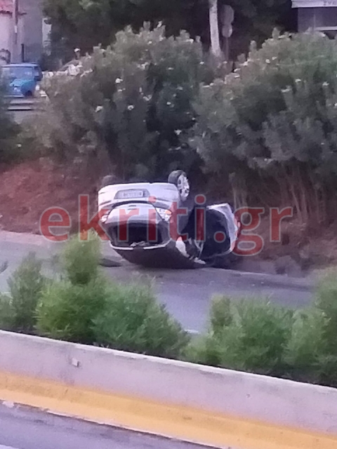 Τροχαίο ατύχημα σημειώθηκε περίπου στις 07.00 το πρωί στο Ηράκλειο. Το ΙΧ αυτοκίνητο που οδηγούσε μία γυναίκα, με κατεύθυνση από Γιόφυρο προς Λεωφόρο Παπαναστασίου, κάτω από συνθήκες που ερευνώνται από την τροχαία, εξετράπη της πορείας του και ανετράπη, όπως βλέπετε στις φωτογραφίες του ekriti.