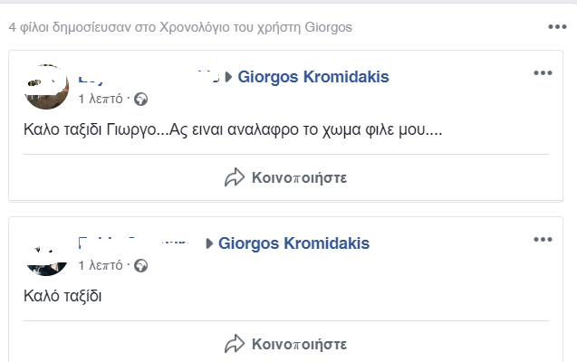 Την ίδια ώρα, συγκινητικά είναι τα μηνύματα που αφήνουν οι φίλοι του στην προσωπική του σελίδα στα μέσα κοινωνικής δικτύωσης.
