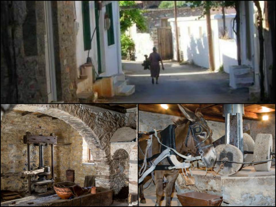 Κάτω: Το ανακαινισμένο παραδοσιακό ελεοτριβείο στο χωριό Σέλλες.