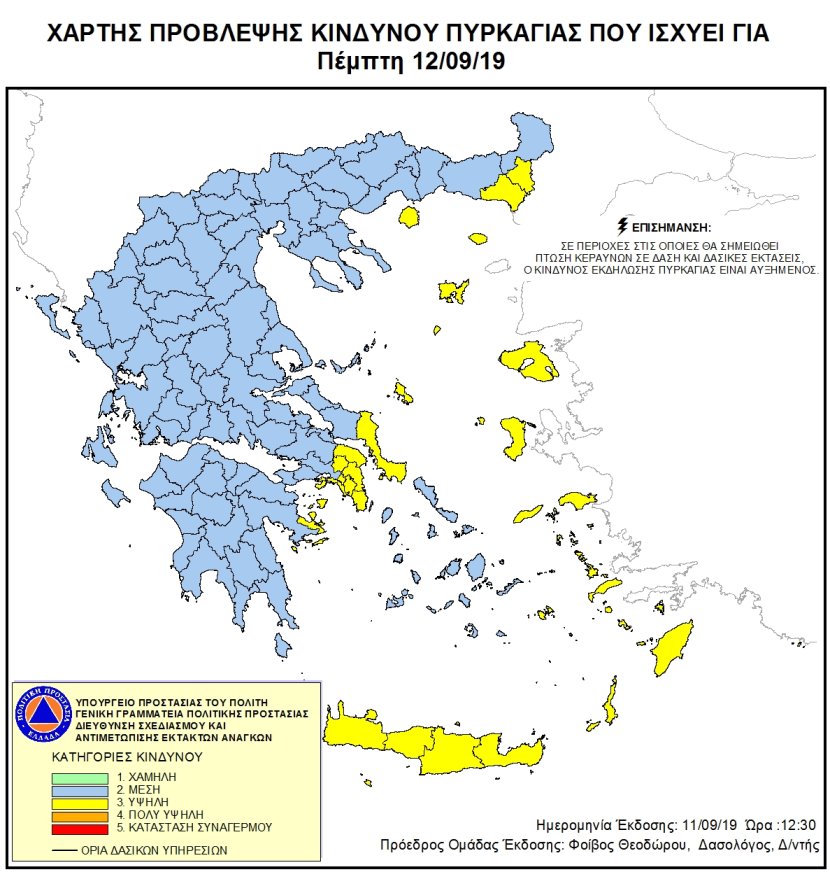 Υψηλός σε όλη την Κρήτη θα είναι την Πέμπτη ο κίνδυνος εκδήλωσης πυρκαγιάς σύμφωνα με τον χάρτη πρόβλεψης της Γενικής Γραμματείας Πολιτικής Προστασίας.