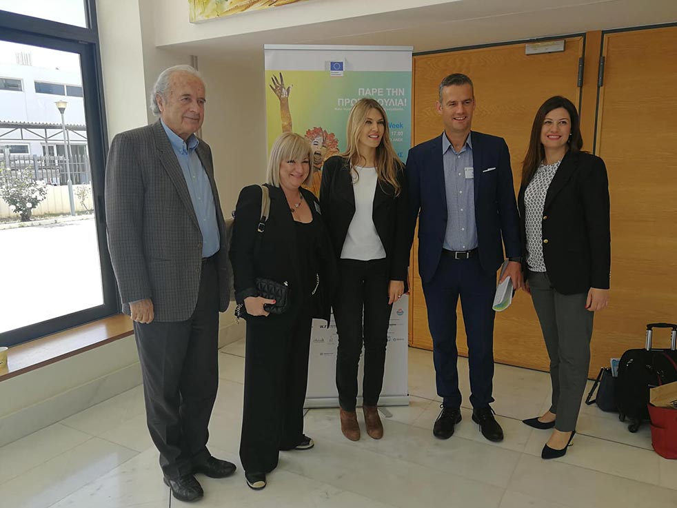 (Αναμνηστική φωτογραφία λίγο μετά την λήξη των εργασιών: από αριστερά ο Πρόεδρος της ΑΝΕΚ κος Γιώργος Κατσανεβάκης, δίπλα του η Επικοινωνιολόγος κα Μάγδα Κατόπη, στο κέντρο η Ευρωβουλευτής κα Εύα Καϊλή, δίπλα της ο Δ/νων Σύμβουλος της Global Sustain Group κος Μιχάλης Σπανός και δεξιά του η επιχειρηματίας κα Εβελίνα Μπάκιντα)