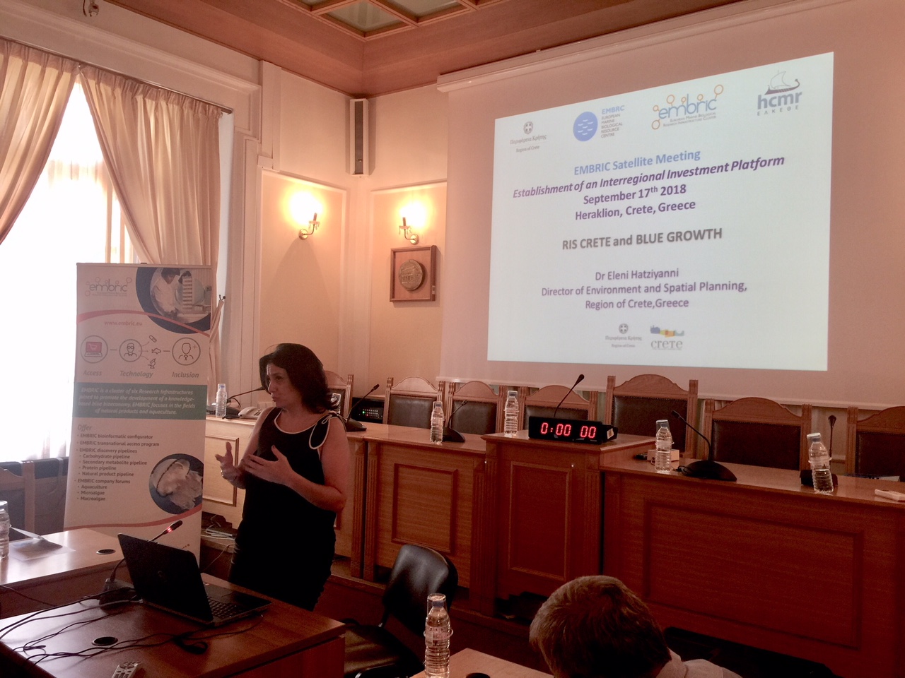 Η Ελένη Χατζηγιάννη, Διευθύντρια Περιβάλλοντος και Χωρικού Σχεδιασμού, παρουσίασε τις θεματικές προτεραιότητες των τεσσάρων πυλώνων της RIS Crete που σχετίζονται με τη θαλάσσια θέματα καθώς και τις δράσεις της Περιφέρειας Κρήτης μέσα από το Ευρωπαϊκό Έργο MISTRAL για την ανάπτυξη clusters Γαλάζιας Ανάπτυξης στη Μεσόγειο, και μέσω του BLUEMED, για την ενίσχυση της Γαλάζιας Οικονομίας. Η Κατερίνα Ρουσσάκη, στέλεχος της Διεύθυνσης Αναπτυξιακού Προγραμματισμού παρουσίασε τους πυλώνες, σύστημα διακυβέρνησης και την μέχρι τώρα υλοποίηση της RIS Crete, και ακολούθησαν οι παρουσιάσεις των Στρατηγικών Έξυπνης Εξειδίκευσης και των άλλων Περιφερειών.