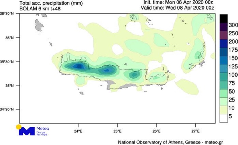 Η ατμοσφαιρική διαταραχή που επηρεάζει τη χώρα μας το τελευταίο διήμερο θα επηρεάσει τη Δευτέρα 06/04 και Τρίτη 07/04 και την Κρήτη, με σημαντικά ύψη βροχής να προβλέπονται κυρίως στα δυτικά του νησιού.
