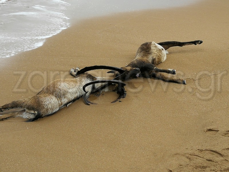 Η θάλασσα, ξέβρασε στην παραλία δύο νεκρά κρι – κρι. Μάλιστα, όπως βλέπετε στις φωτογραφίες του zarpanews τα κέρατά τους είναι μπλεγμένα, κάτι που πιθανόν να σημαίνει, σύμφωνα με τους κατοίκους, ότι κατέληξαν στη θάλασσα ενώ πάλευαν μεταξύ τους, στη νησίδα των Αγίων Θεοδώρων.