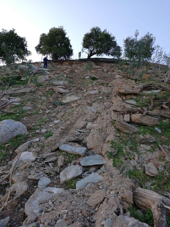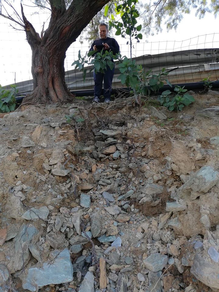 "Κάναμε το απόγευμα επιτόπια επίσκεψη με τον φίλο το Μπάμπη το Φασουλά, Δρα Γεωλόγο, Υπεύθυνο του τμήματος Γεωπικοιλότητας του Μουσείου Φυσικής Ιστορίας στις 2 μεγάλες ρωγμές επί του οδοστρώματος στα Λινοπεράματα.