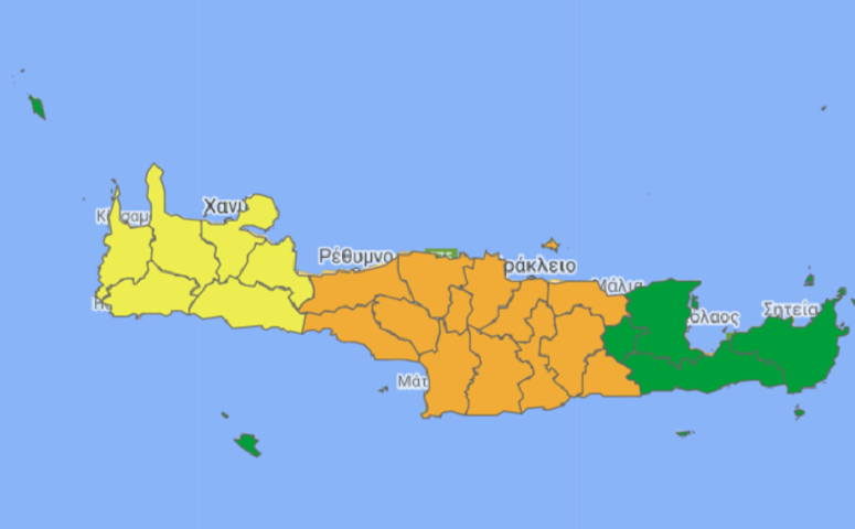 Με χρώμα "πορτοκαλί" εμφανίζονται από σήμερα το πρωί οι νομοί Ρεθύμνου και Ηρακλείου στον επιδημιολογικό χάρτη που επικαιροποιήθηκε από τον ΕΟΔΥ.