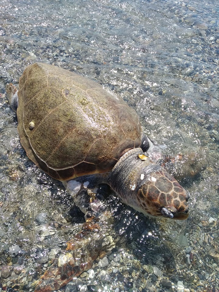 Εδοποιήθηκε το Λιμενικό, όμως η θαλάσσια χελώνα δείχνει ότι δεν θα μπορέσει να κρατηθεί στη ζωή, γεγονός που προκάλεσε θλίψη...