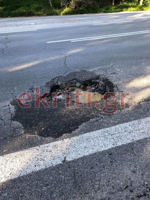 Όλα έγιναν χθες όταν ο οδηγός ερχόμενος στο Ηράκλειο, έπεσε στην επικίνδυνη λακκούβα που βρίσκεται λίγα χιλιόμετρα μετά τις Μοίρες.