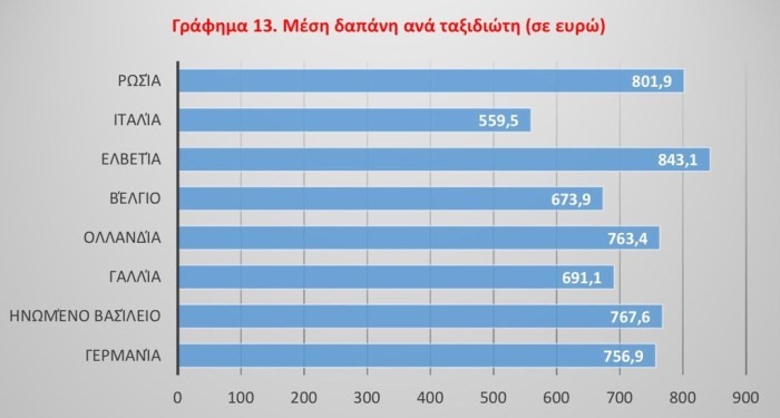 Οι Ελβετοί ταξιδεύουν συχνά (23 εκατομμύρια ταξίδια ετησίως) με υψηλό μέσο όρο δαπάνης ανά ταξίδι. Οι εισπράξεις της Κρήτης προέρχονται κυρίως από Γερμανούς, Βρετανούς, Γάλλους, Ολλανδούς, Βέλγους, Ελβετούς, Ρώσους και Ιταλούς. Για να αντιληφθεί κάποιος τη μεγάλη σημασία της ελβετικής αγοράς για την Κρήτη είναι χαρακτηριστικό το γράφημα από την έκθεση της ΤτΕ για το 2017 όπου φαίνεται ότι την υψηλότερη δαπάνη στο νησί καταγράφουν οι Ελβετοί με 843,1 ευρώ ανά επισκέπτη