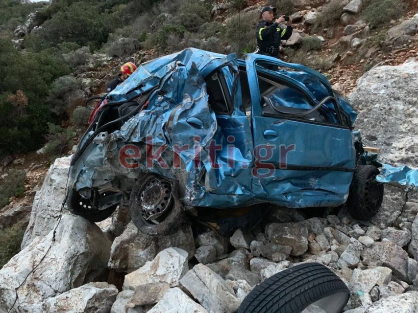 Το ύψος του γκρεμού κόβει στην κυριολεξία την ανάσα. Η μητέρα και τα δύο της παιδιά, βρέθηκαν από τους πυροσβέστες μέσα στο όχημα, η μητέρα σοβαρά τραυματισμένη και τα παιδια ελαφρύτερα.
