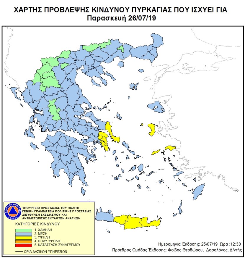 Συγκεκριμένα ο κίνδυνος θα είναι στην κατηγορία 3 ενώ η Πυροσβεστική εφιστά την προσοχή των πολιτών.