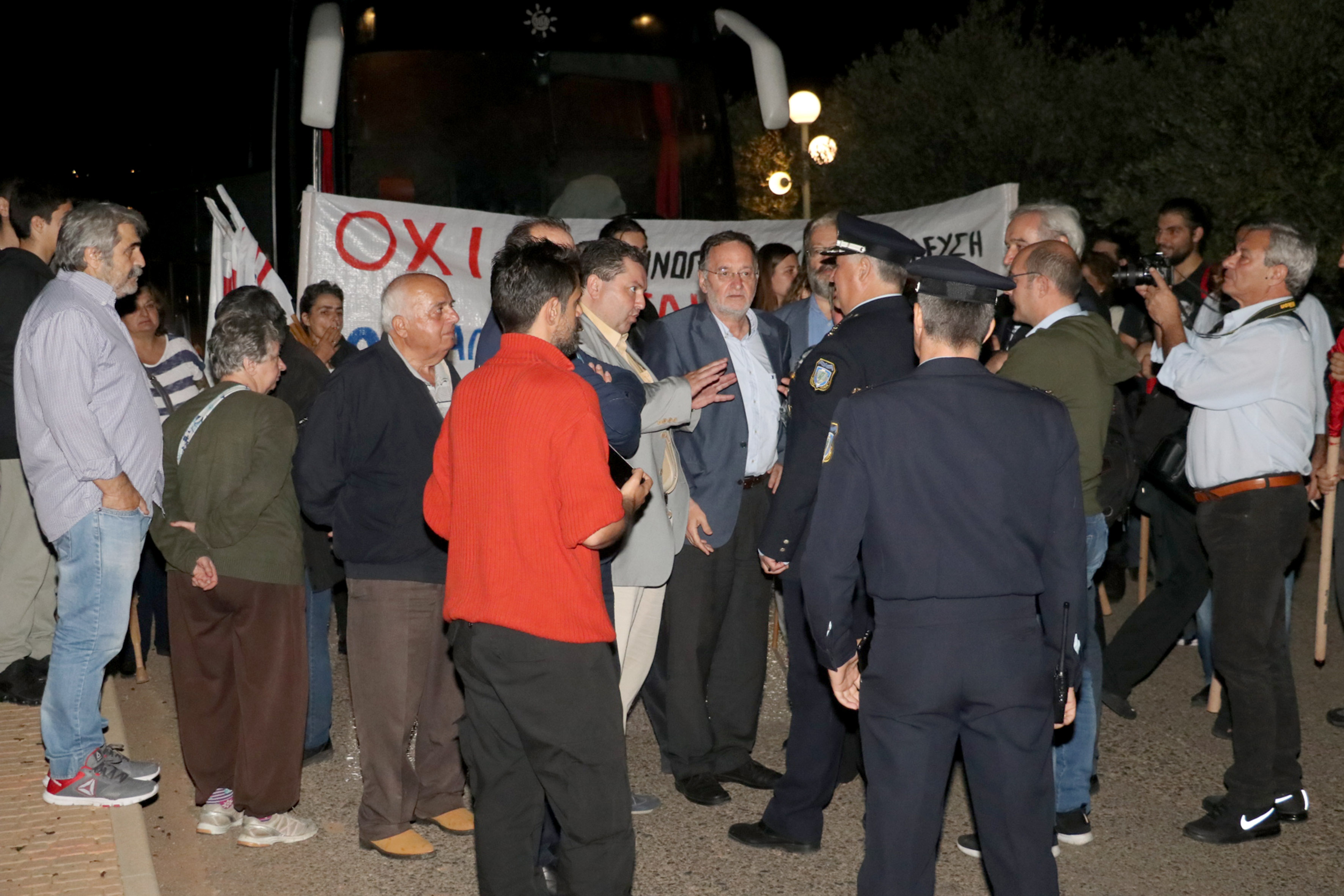 Ισχυρές αστυνομικές δυνάμεις είχαν παραταχθεί στο σημείο και εμπόδισαν την είσοδο των διαδηλωτών στον κυρίως χώρο της συνέλευσης.