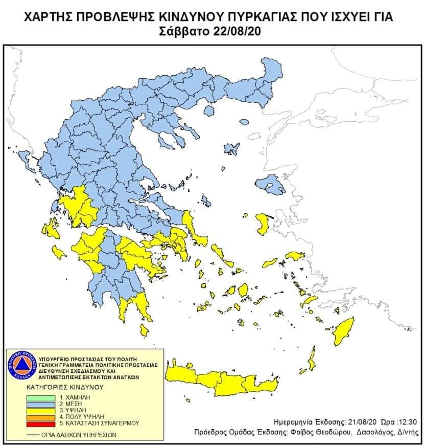 Κατηγορίας τρία, δηλαδή υψηλός, θα είναι το Σάββατο 1η Αυγούστου ο κίνδυνος εκδήλωσης πυρκαγιάς σε όλη την Κρήτη, σύμφωνα με τον χάρτη πρόβλεψης της Γενικής Γραμματείας Πολιτικής Προστασίας.