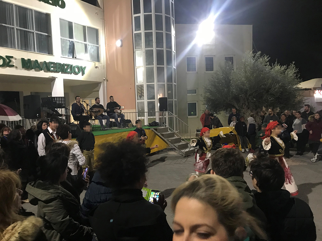 Το καλλιτεχνικό πρόγραμμα της εκδήλωσης περιλάμβανε κρητικούς χορούς από τους Πολιτιστικούς Συλλόγους Γαζίου, Αγίας Μαρίνας, Δαμάστας, εντυπωσιακά πυροτεχνήματα, χριστουγεννιάτικα τραγούδια από την Δημοτική Μικτή Χορωδία Ενηλίκων και την μαέστρο της Εύα Κουτσογιαννάκη, συναυλία από το μουσικό σχήμα του Πολιτιστικού Συλλόγου Γαζίου με τους Θ. Πλευράκη, Λ. Καφτάκη και Μ.Α. Σουλτάτου, ξωτικά από την ομάδα εμψυχωτών «Bubble - Bubble» που «μεταμόρφωναν» τα παιδικά πρόσωπα με ζωγραφιές, κεράσματα λουκουμάδων από τη σχολή KAPPA STUDIES, το Συνεταιρισμό Γυναικών Μαράθου να φτιάχνει το Ξομπλιαστό Κουλουράκι, μπουφέ από το Δήμο Μαλεβιζίου και φυσικά, πολλά – πολλά δώρα για όλα τα παιδιά. Δράσεις χαράς και κεφιού που επιμελήθηκε η Αντιδημαρχεία Παιδείας, οι Σχολικές Επιτροπές και το Γραφείο Παιδείας του Δήμου Μαλεβιζίου.