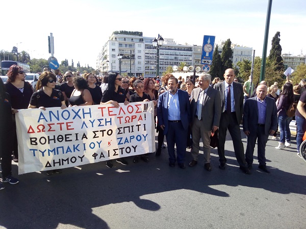 Δεκτός με ενθουσιασμό έγινε ο γραμματέας της Κ.Ο. Δημοκρατικής Συμπαράταξης ΠΑΣΟΚ-ΔΗΜΑΡ και Βουλευτής Ηρακλείου, κ. Βασίλης Κεγκέρογλου από τους εργαζόμενους στο «Βοήθεια στο Σπίτι», που διαδηλώνουν σήμερα στην Πλατεία Συντάγματος, αναγνωρίζοντας στο πρόσωπο του τη διαχρονική στήριξη του αλλά και του Κινήματος Αλλαγής, στην ομαλή και απρόσκοπτη λειτουργία του προγράμματος τα τελευταία 20 χρόνια.