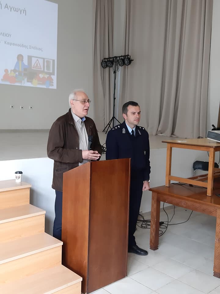 Ο Υποδιοικητής της τροχαίας Ηρακλείου, Αστυνόμος Β Στυλιανός Καρακούδης, με τον λόγο του με εικόνες και παραδείγματα κατάφερε να γκρεμίσει ορισμένους μύθους γύρω από την ορθή οδική συμπεριφορά και να επιστήσει την προσοχή των μαθητών και αυριανών οδηγών στην προσεκτική και ασφαλή οδήγηση. Με κεντρικό μήνυμα το «Αγαπώ τη ζωή, σημαίνει ότι τη σέβομαι», «Αγαπώ την οικογένεια, μου σημαίνει ότι την προστατεύω», «Οδηγώ, σημαίνει ευθύνη». Όλα αυτά όπως τόνισε επιτυγχάνονται με την ασφαλή οδήγηση με τη χρήση ζώνης, με εφαρμογή του Κ.Ο.Κ. , με αποχή από το αλκοόλ, με την χρήση του προστατευτικού κράνους….