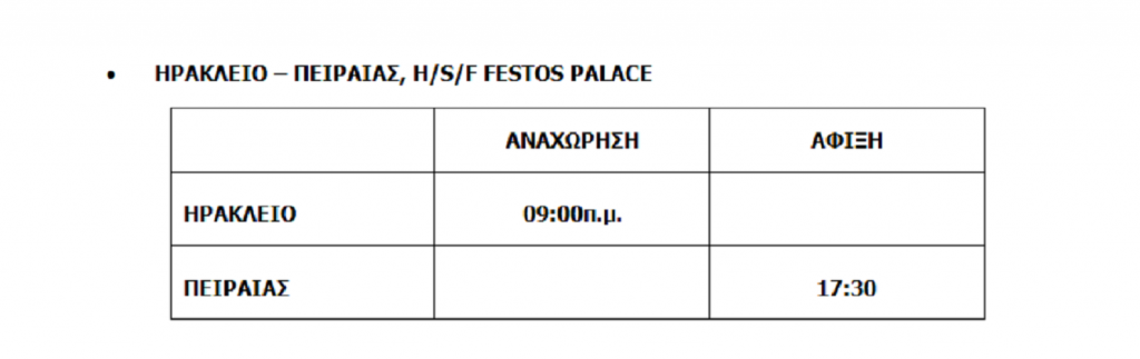 ΠΕΙΡΑΙΑΣ – XANIA, H/S/F FESTOS PALACE