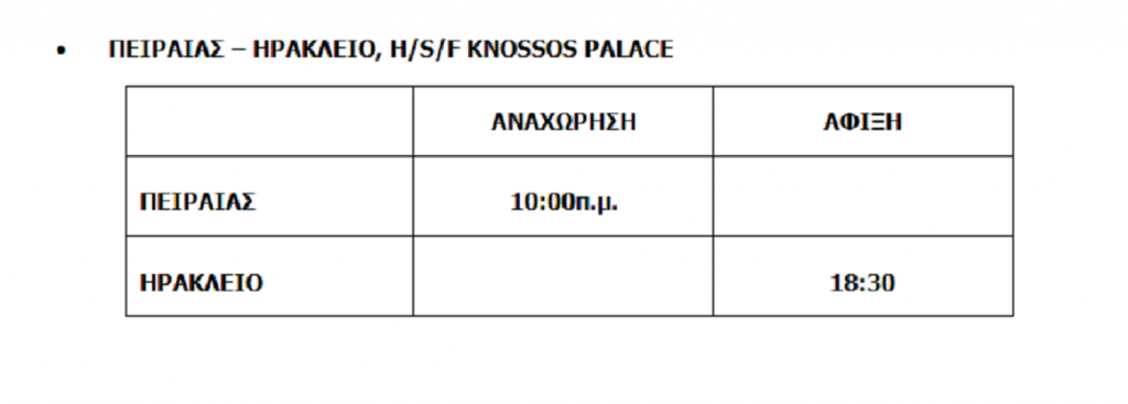 ΗΡΑΚΛΕΙΟ– ΠΕΙΡΑΙΑΣ, H/S/F KNOSSOS PALACE