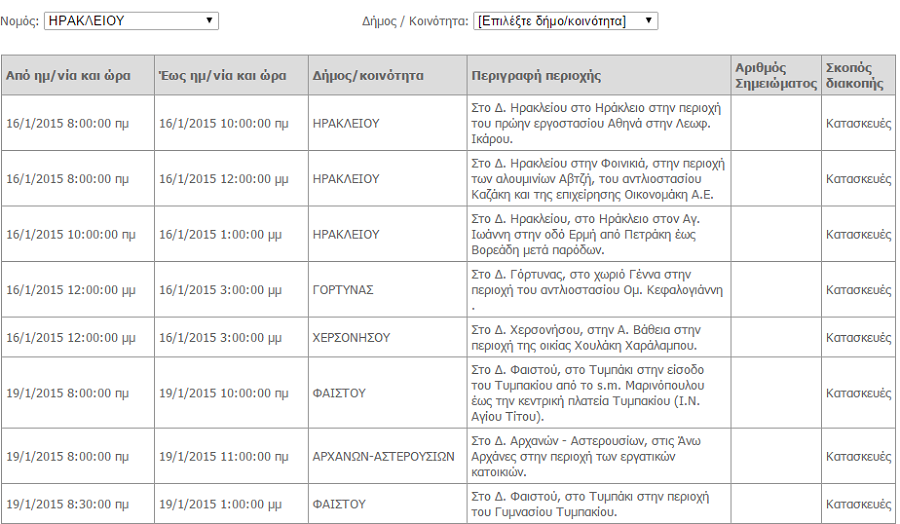 Διακοπές ρεύματος θα σημειωθούν σε περιοχές του Ηρακλείου από τις 16 Ιανουαρίου μέχρι και τις 19. Δείτε παρακάτω αναλυτικά τις περιοχές.