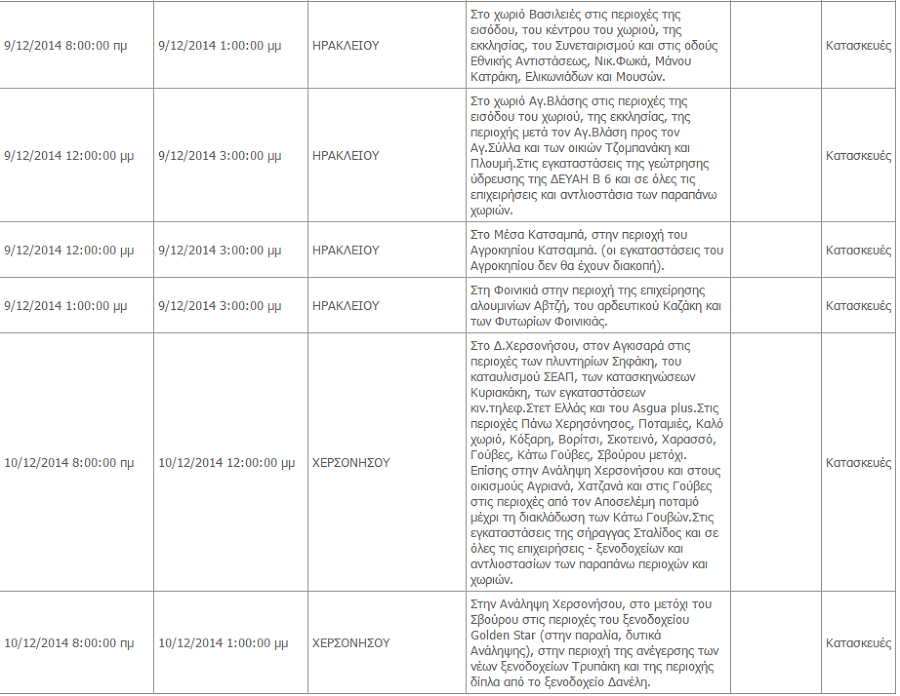 Δείτε παρακάτω τις διακοπές ρεύματος στο Ηράκλειο για τις ημέρες Τρίτη και Τετάρτη.
